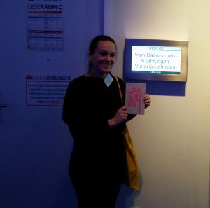 Auch in diesem Jahr war ich wieder als Autorin und Verlegerin auf der BuchBerlin. Diesmal schon recht routiniert. Wie schnell das doch geht. Am zweiten Messetag habe ich nachmittags aus meinem neuen Erzählband „Vom Dazwischen“ gelesen, den „Hater II“. Ein eher experimenteller Text. Tatsächlich konnte ich auch Zuhörer*innen aufrichtig begeistern. 😉 Es freut mich sehr, wenn Leser*innen sich von experimentellen Texten angesprochen fühlen, abseits der Genre-Schubladen.